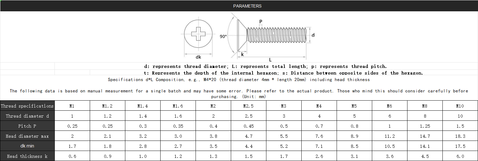 Size Example: M6 × 50