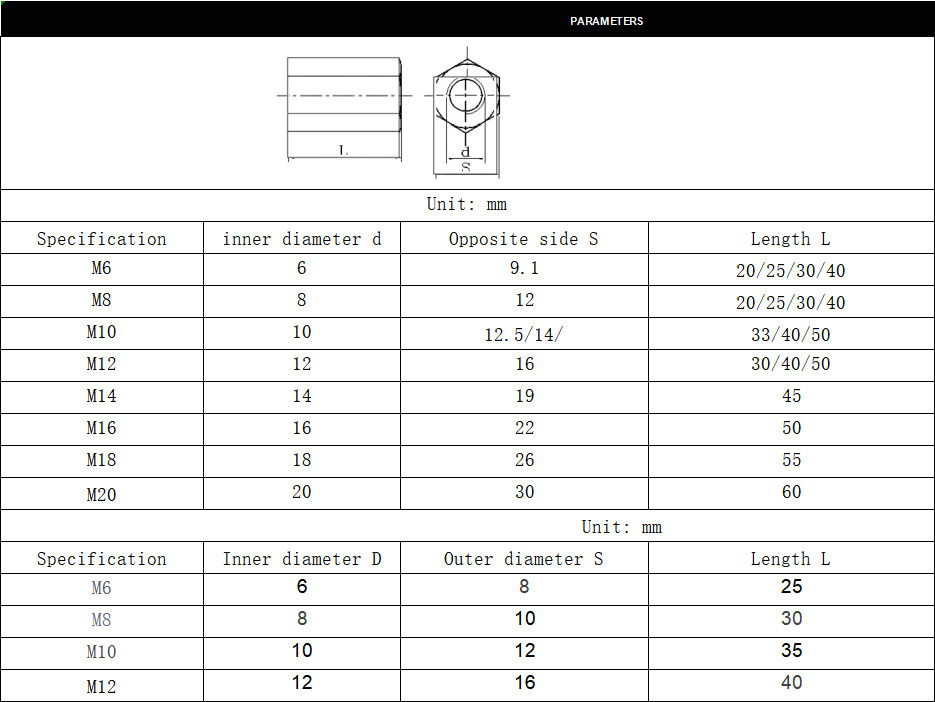 With excellent corrosion resistance and mechanical stability, 304 stainless steel hexagonal extended nuts are ideal for use in machinery, construction, automation equipment, and structural connections where durability and secure fastening are essential.
