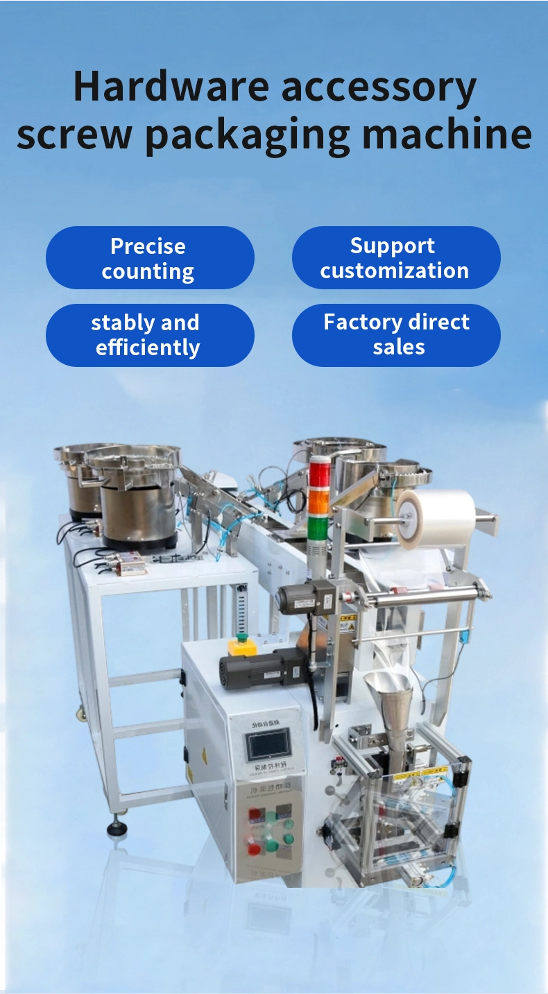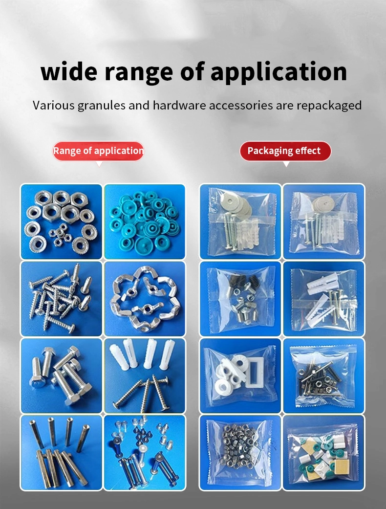 The Automatic Screw Packaging Machine is designed for efficient and precise packaging of screws, nuts, fasteners, and plastic components. It is especially suitable for industries such as furniture, sanitary ware, hardware, electrical appliances, lighting, and building materials, where assembly parts require organized and automated packaging.