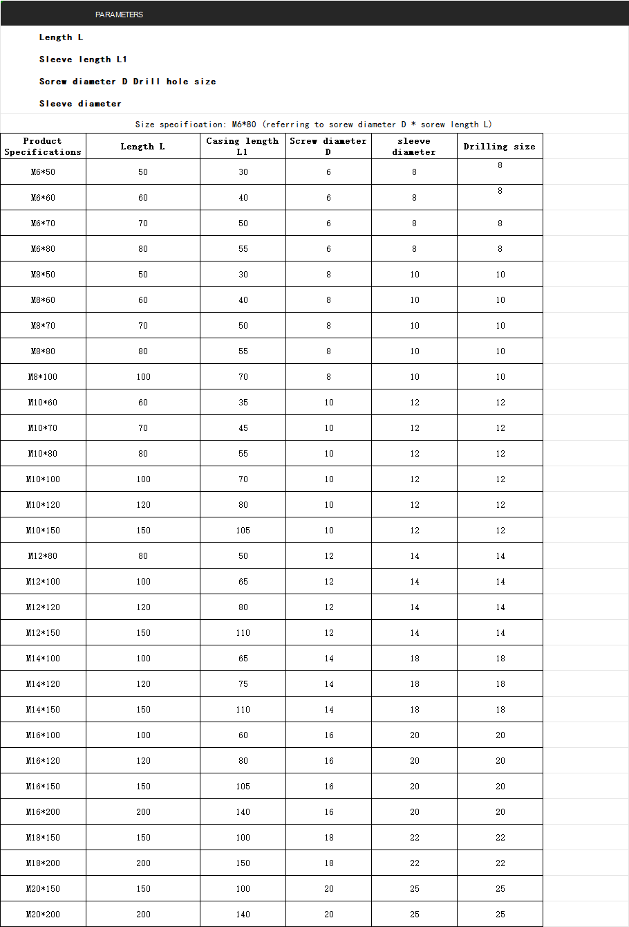 Sizes: e.g., M8 × 100 (Thread diameter: 8 mm, Total length: 100 mm)